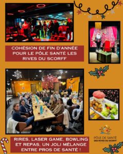 Le Pôle de Santé des Rives du Scorff a réuni ses professionnels autour d’une soirée chaleureuse, pensée pour se retrouver autrement et partager un moment hors du quotidien. L’occasion idéale de prendre le temps d’échanger, de mieux se connaître et de renforcer l’esprit d’équipe qui nous accompagne tout au long de l’année. Après un repas